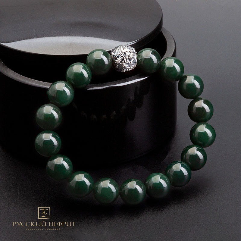 Браслет Дракон из тёмно-зелёного нефрита. Д 12мм.