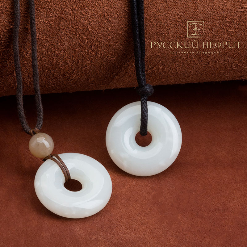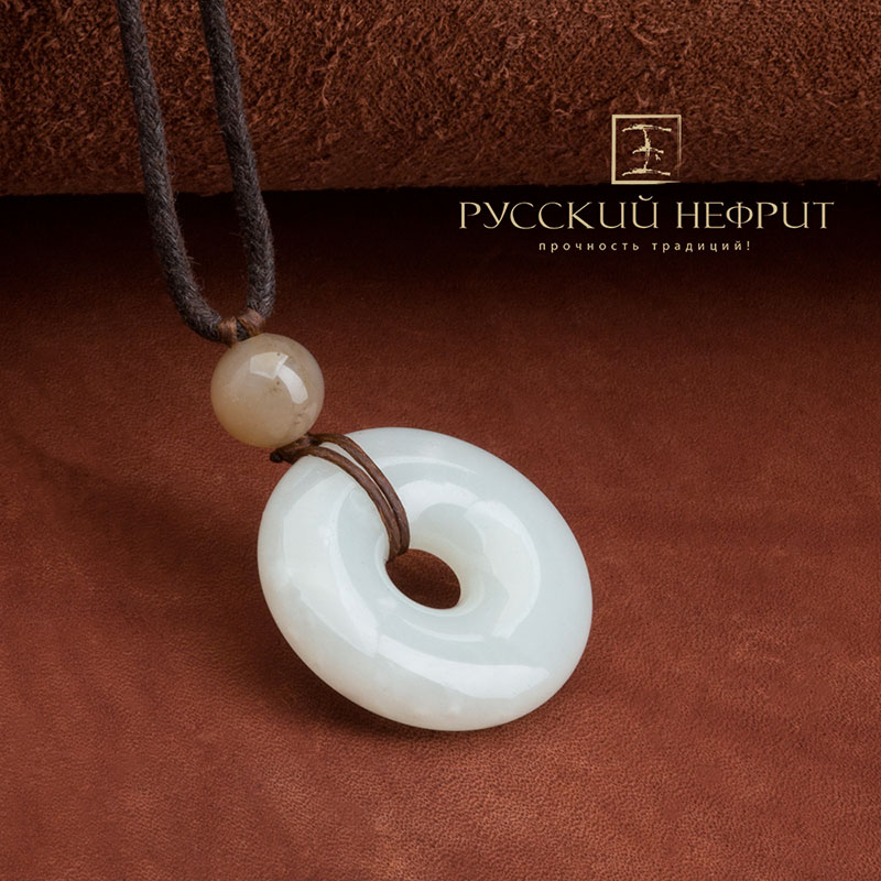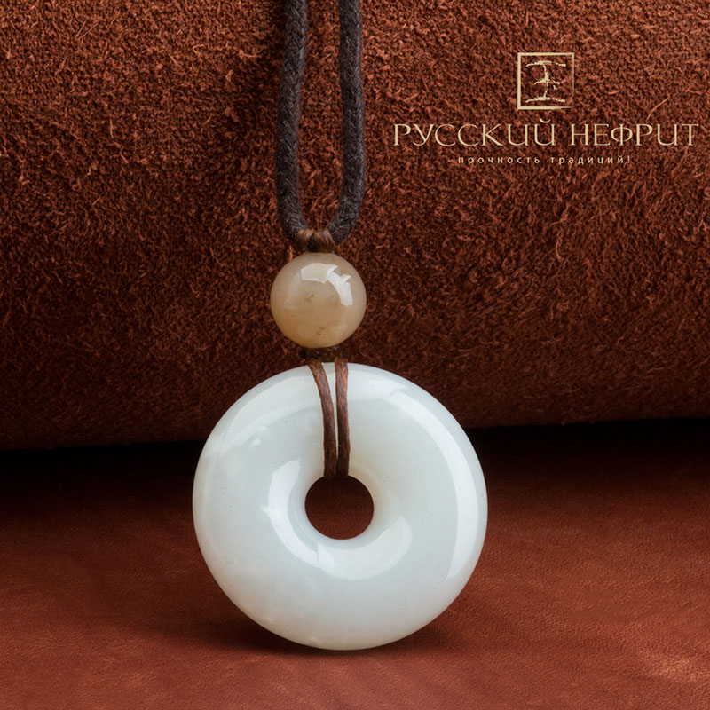 Би диск выполнен из белого нефрита класса модэ, имеет включения белого цвета. Прекрасное качество диска, высококлассная полировка.