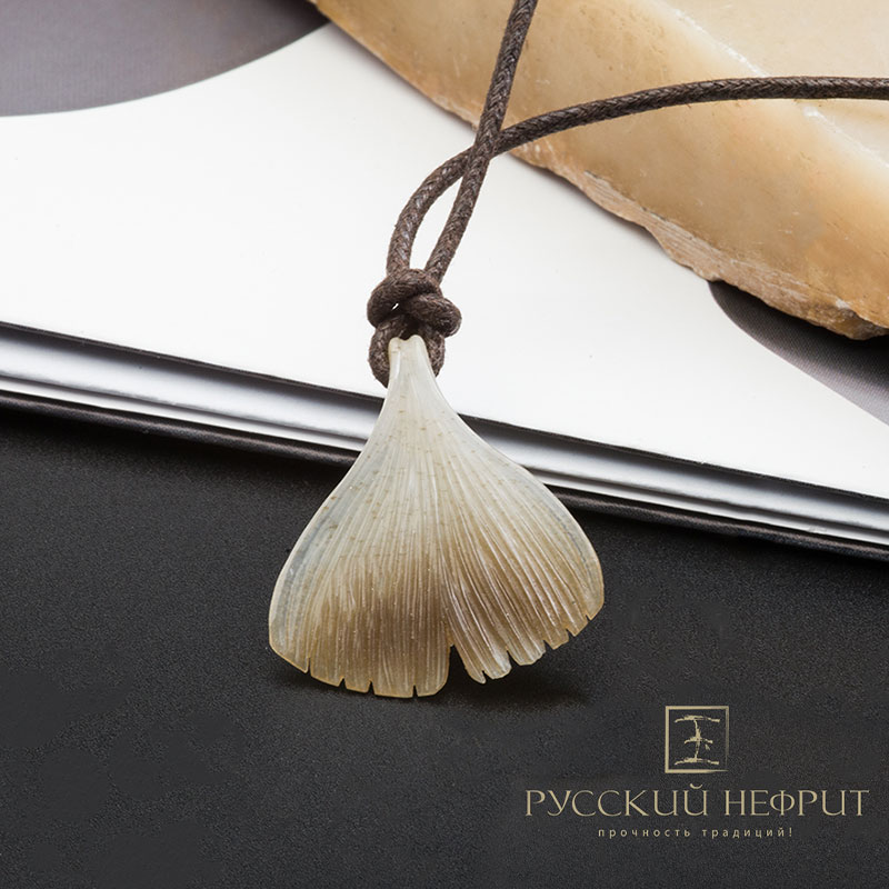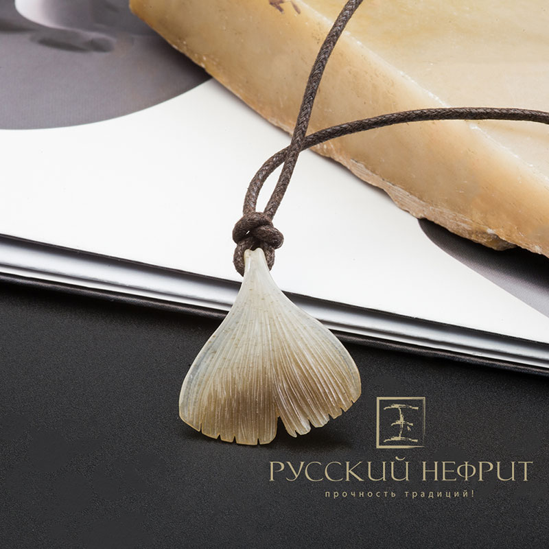 Кулон "Лист Гинкго" из медового нефрита.