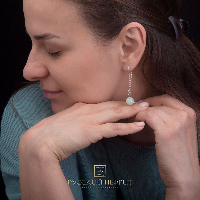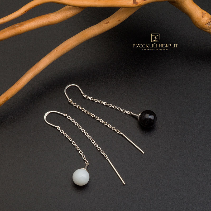 Серьги-протяжки Luna Инь Ян. Серебро, нефрит