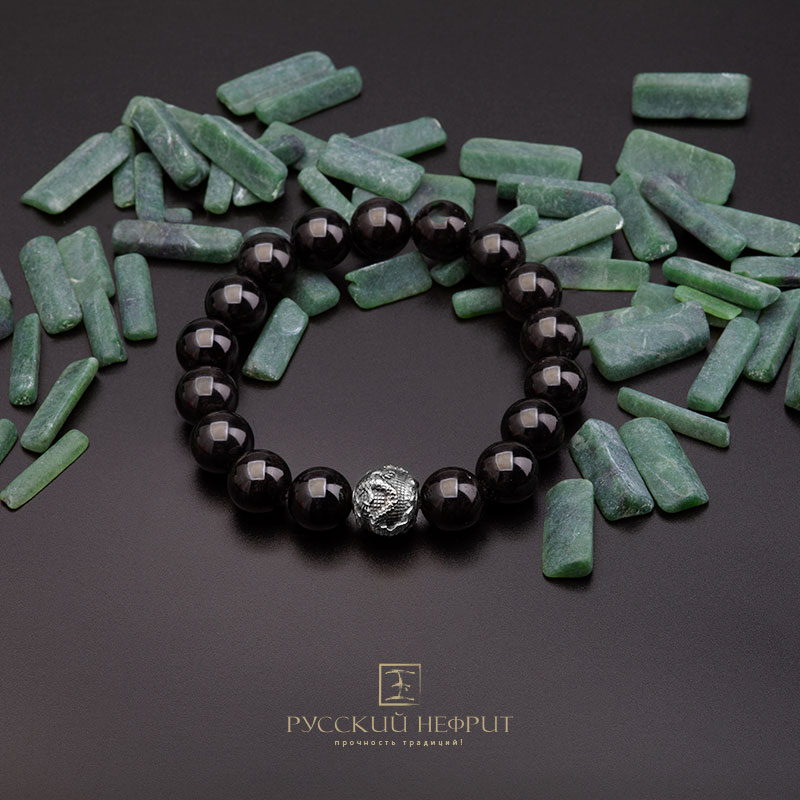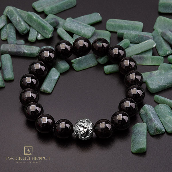 Браслет "Дракон". Чёрный нефрит. Д 12мм.