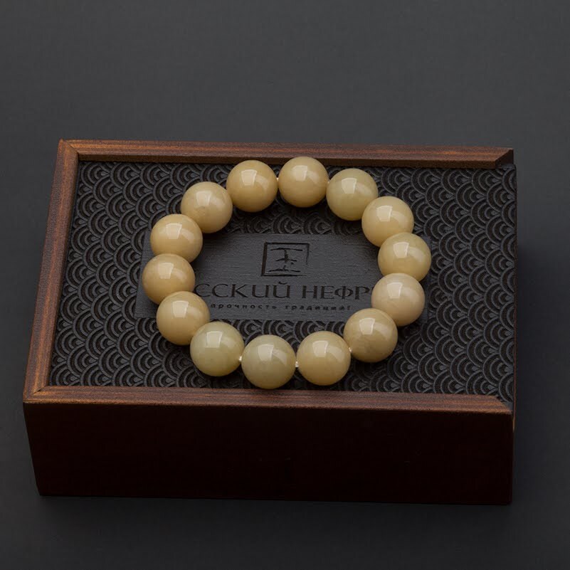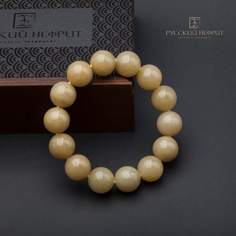 Браслет из больших бусин. Медовый нефрит. Д 15мм.