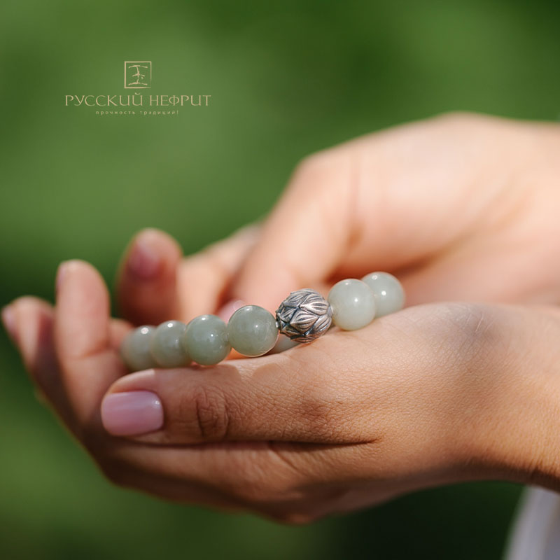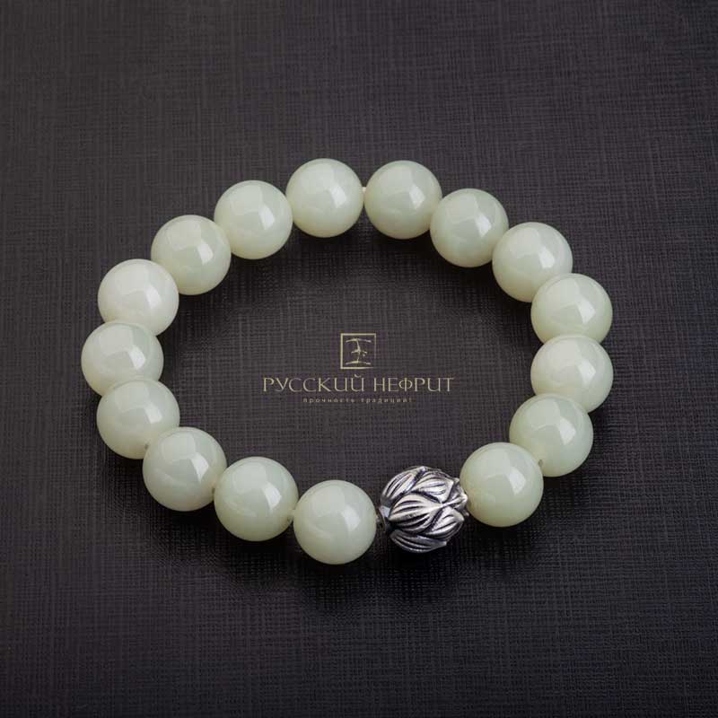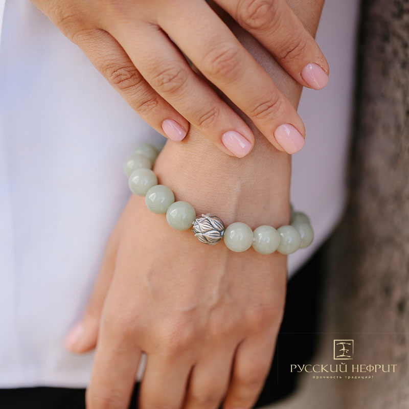 Браслет "Лотос". Буромский нефрит. Д 12мм.