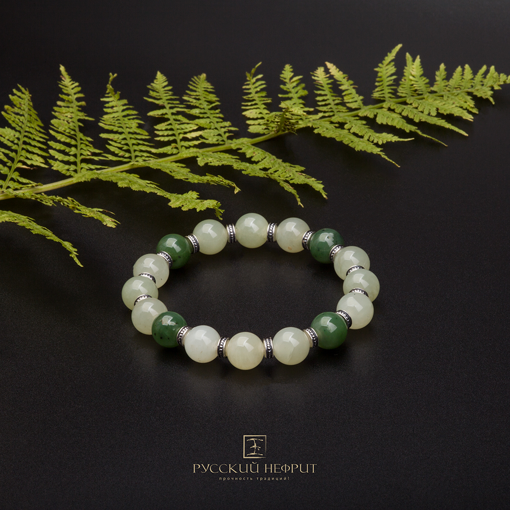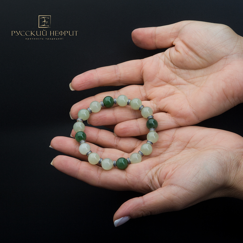 Браслет "Восток". Буромский нефрит. 10мм.