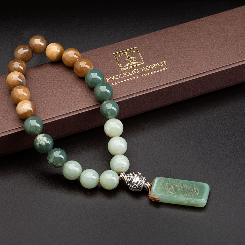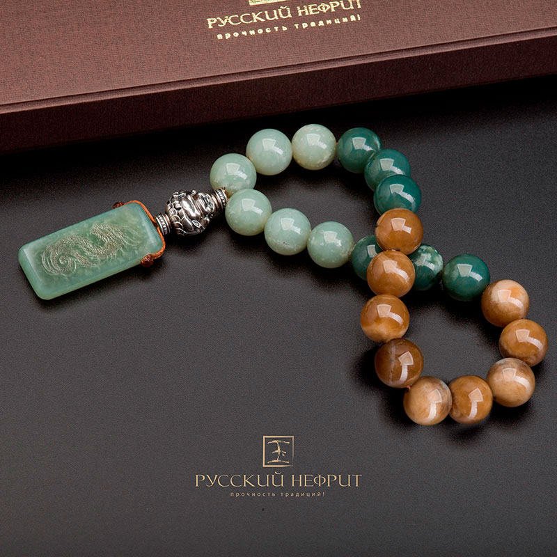 Чётки из нефрита "Время Дракона". 21 бусина.