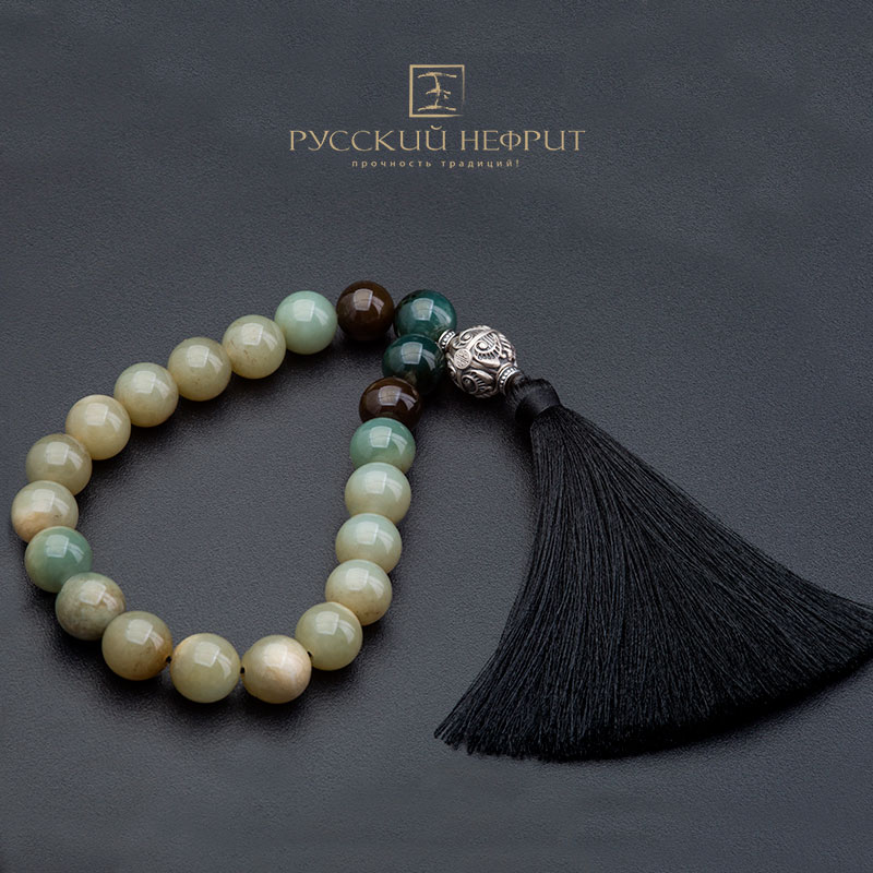 Чётки из нефрита "Ананда". 21 бусина.