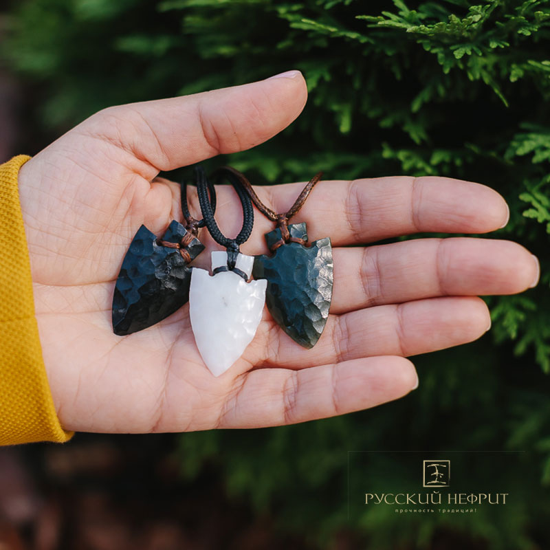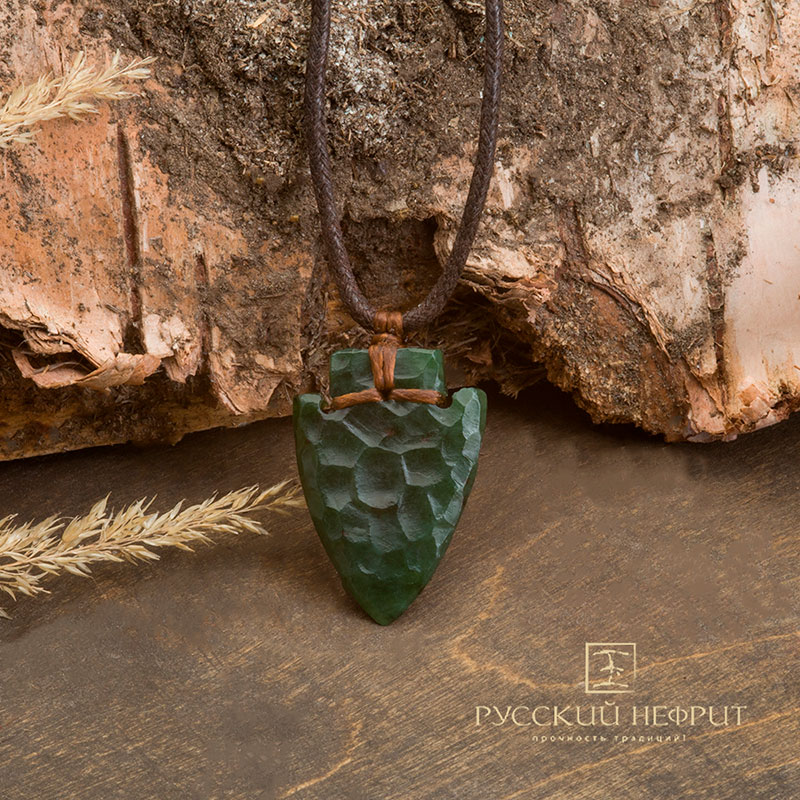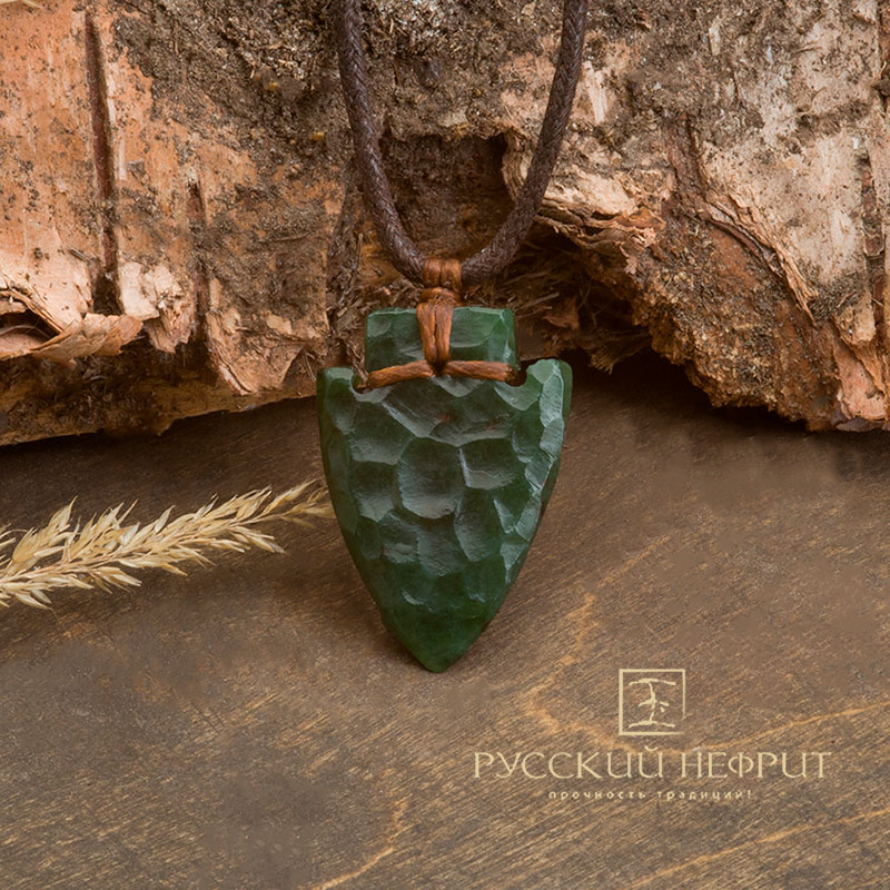 Оберег "Стрела". Тёмно-зелёный нефрит
