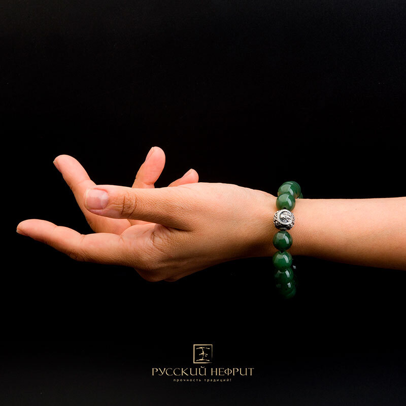 Браслет "Православный". Зелёный нефрит. Бусины 12 мм.
