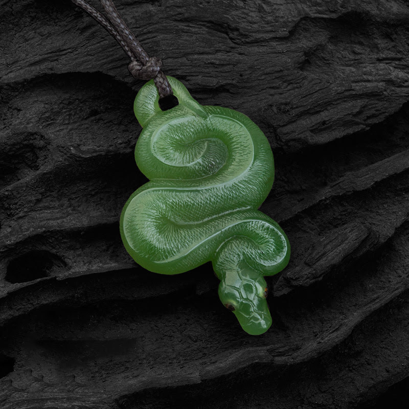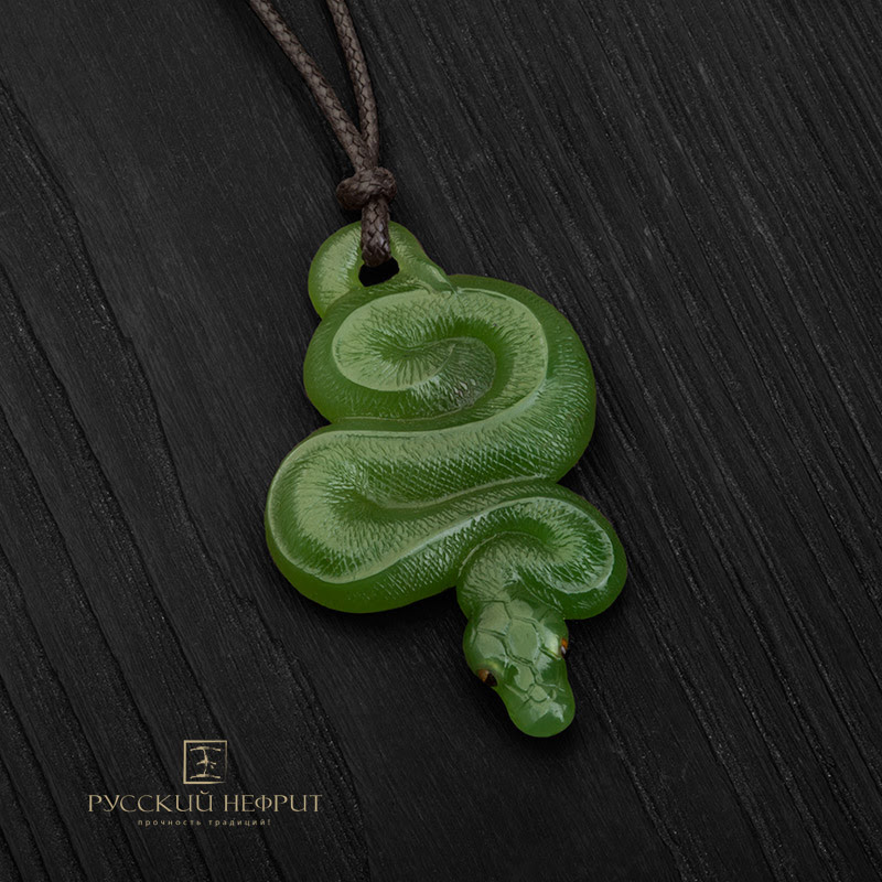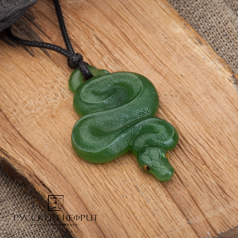 Резная подвеска в виде зеленой рептилии чрезвычайно красива. Змея имеет четко-прорисованную чешую, которая тактильно-приятна и естественна. Мамбу такого оттенка в странах Африки называют "зеленым демоном". Так что обладателем данного подвеса должен стать только кто-то особенный.