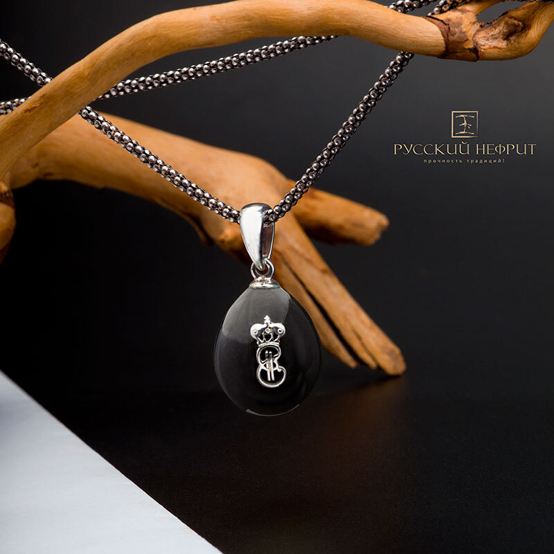 Чёрный кулон с серебром. Вензель Екатерины II.