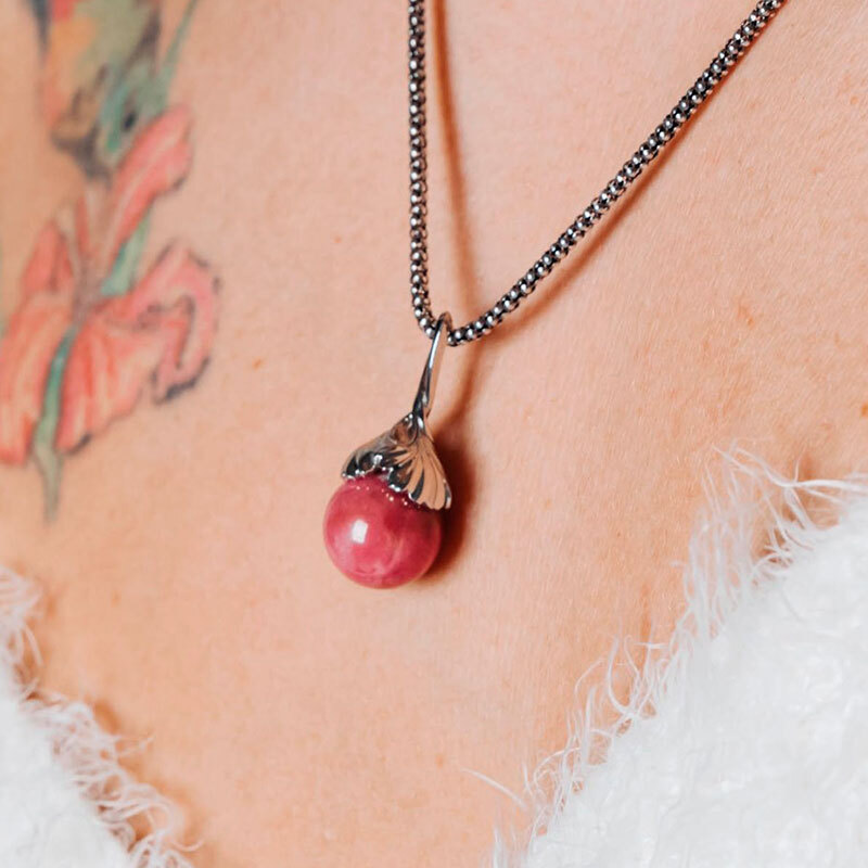 Кулон "Лист Гинкго" с родонитом.