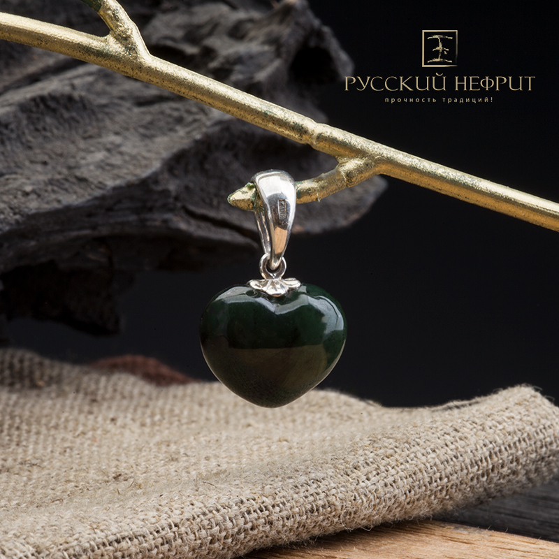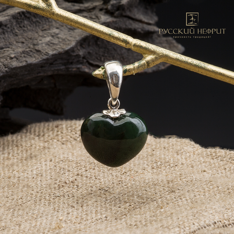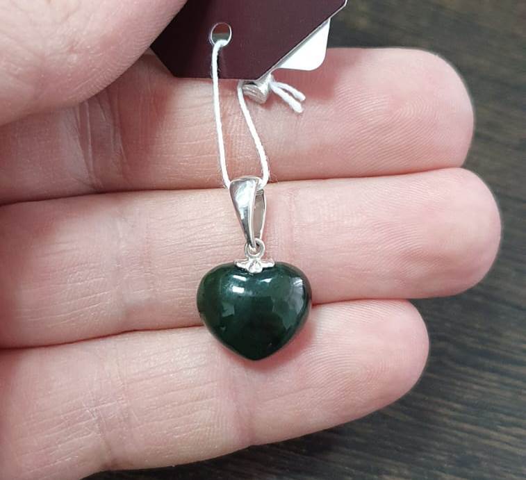 Кулон "Сердечко". Зеленый нефрит, серебро.