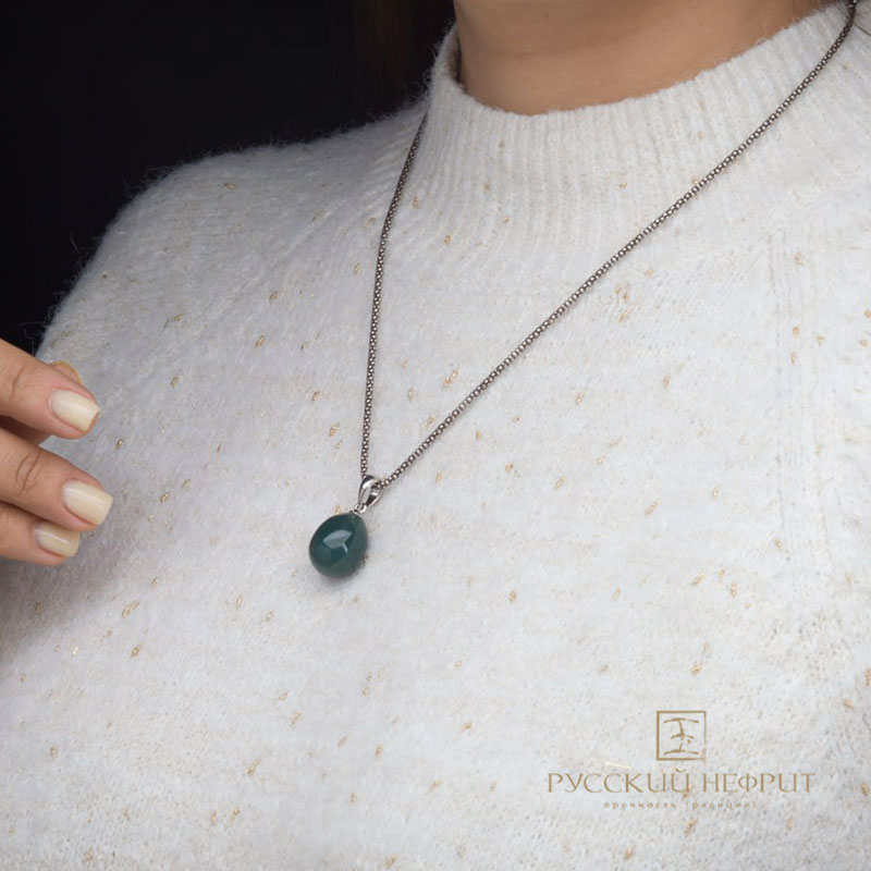Кулон яйцо "Genesis". Нефрит Морская волна.