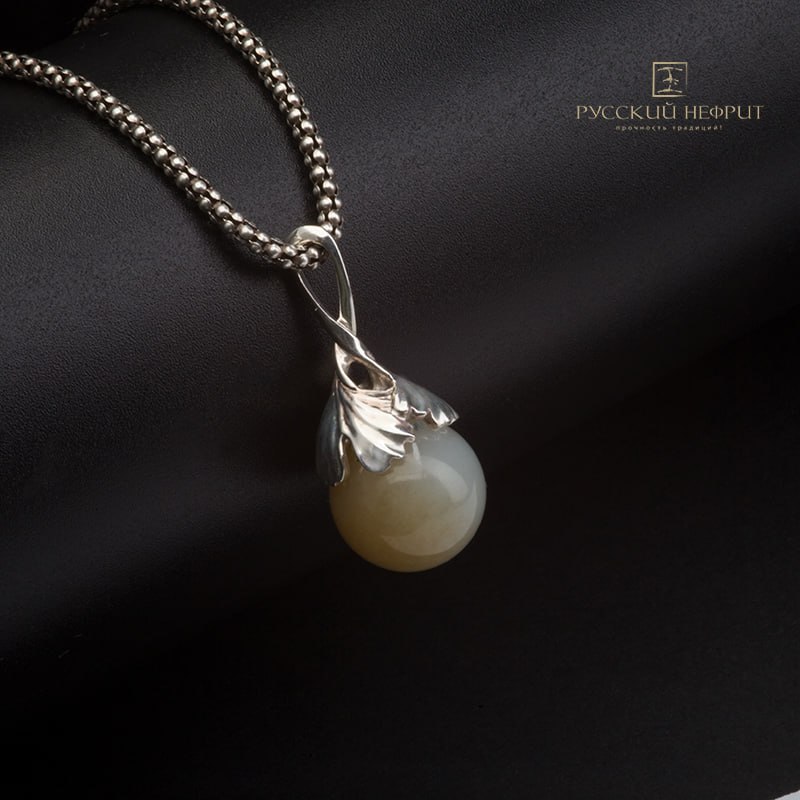 Подвеска с медовым нефритом "Лист Гинкго".