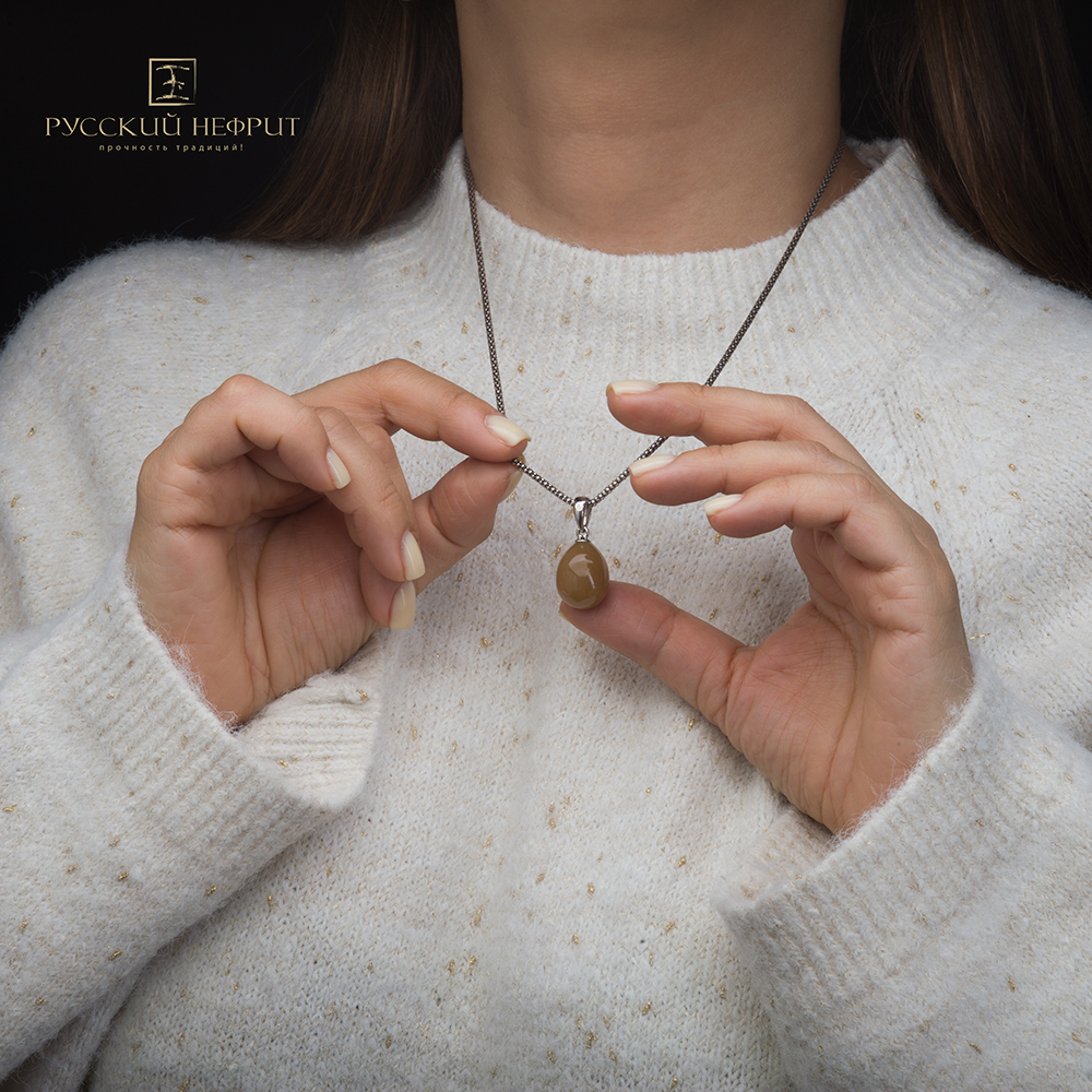 Кулон "Пасхальное яйцо". Медовый нефрит