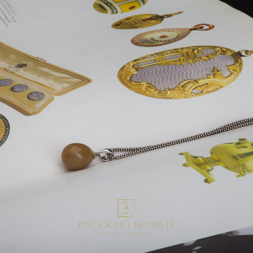 Универсальный подвес - "Пасхальное яйцо" из медового нефрита является репликой фирмы К. Фаберже. Ручная работа, из цельного нефрита с золоченным ушком из серебра 925 пробы.