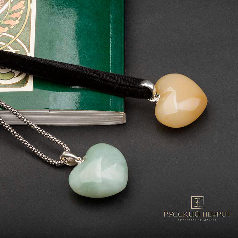 Подвеска кулон Сердце из медового нефрита.