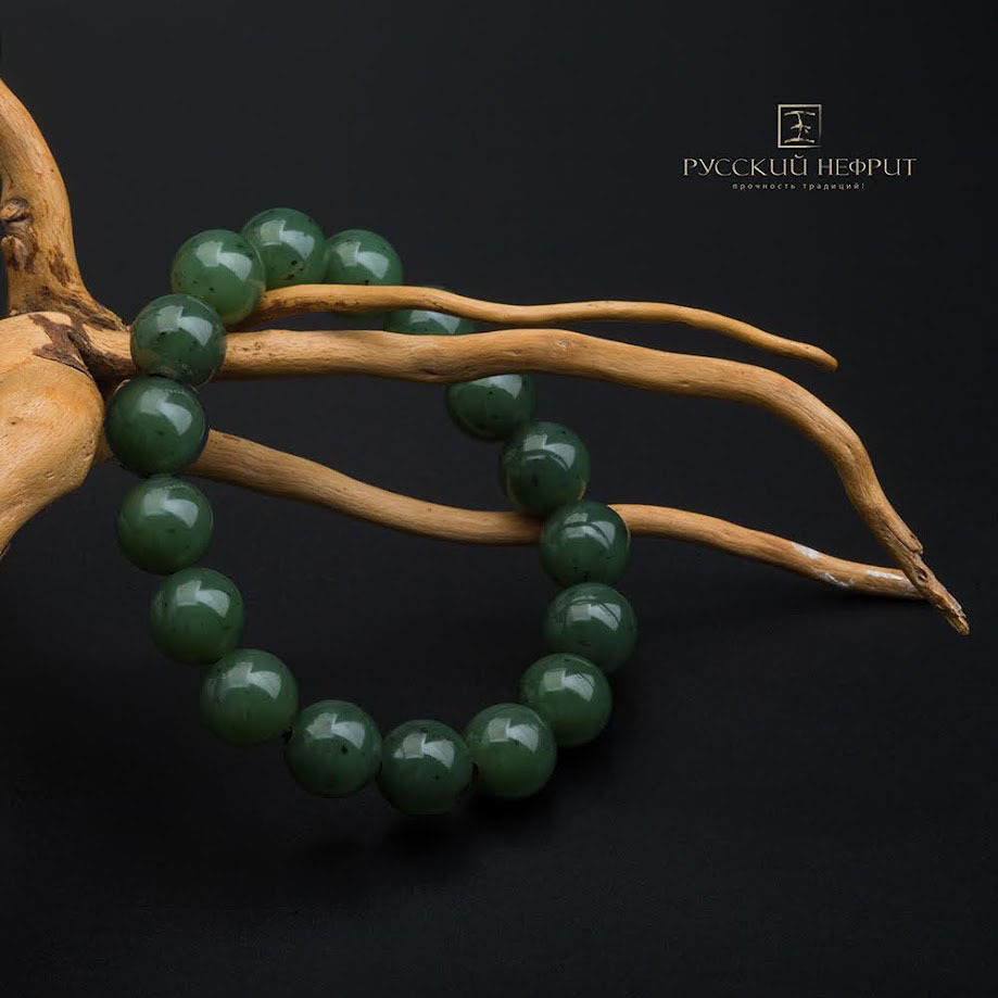 Браслет шарики 12мм из натурального зелёного нефрита. Подойдёт как мужчине, так и женщине.