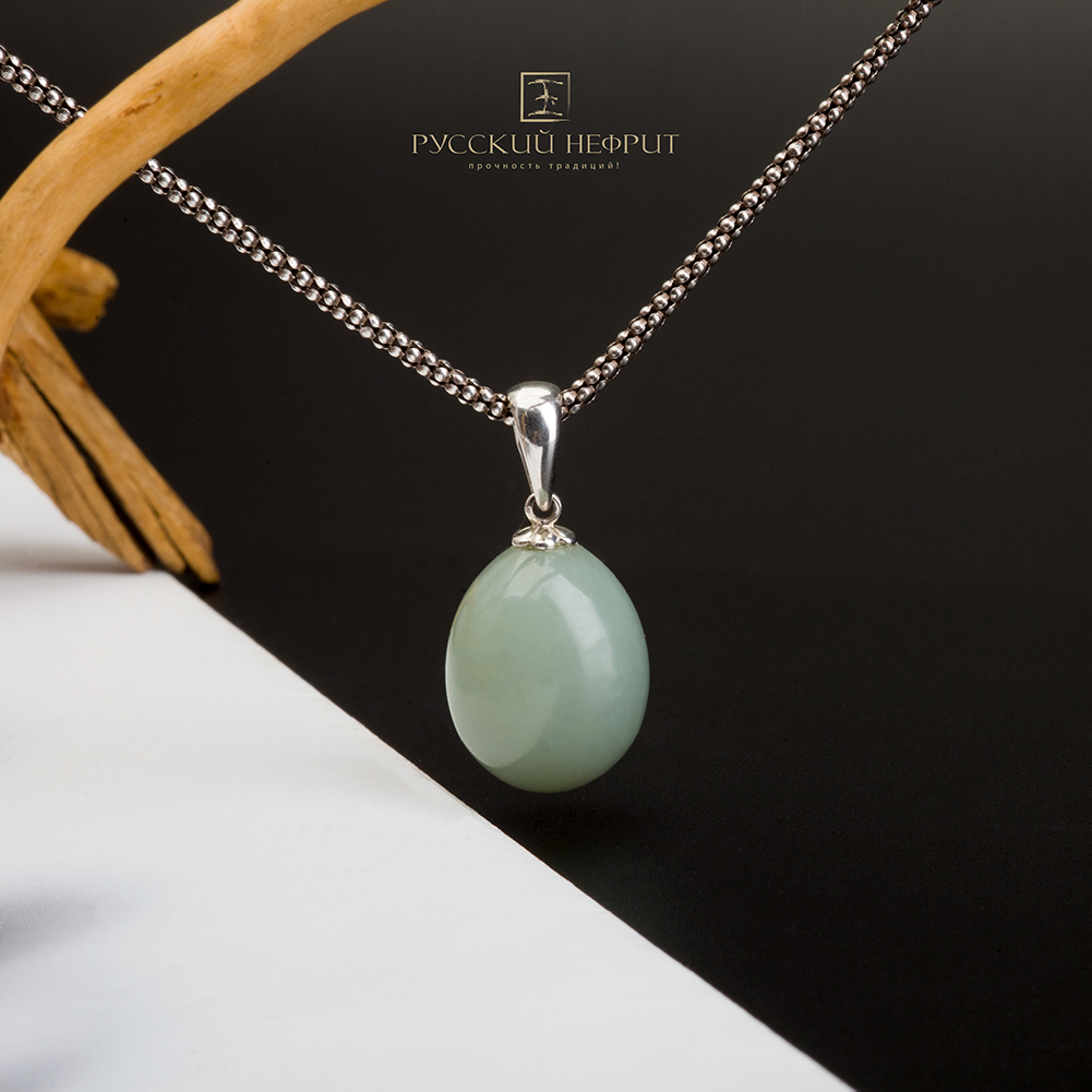 Универсальный подвес - "Пасхальное яйцо" из нефрита цвета морской волны является репликой фирмы К. Фаберже. Яйцо изготовлено вручную, из цельного нефрита с серебряным ушком 925 пробы.