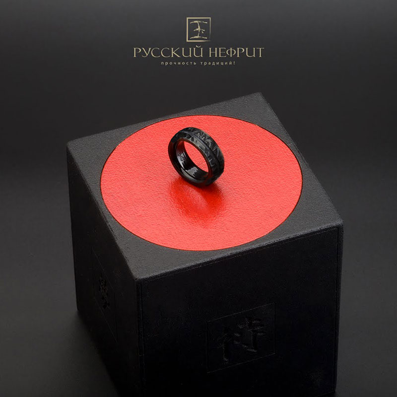 Кольцо из чёрного нефрита резное.