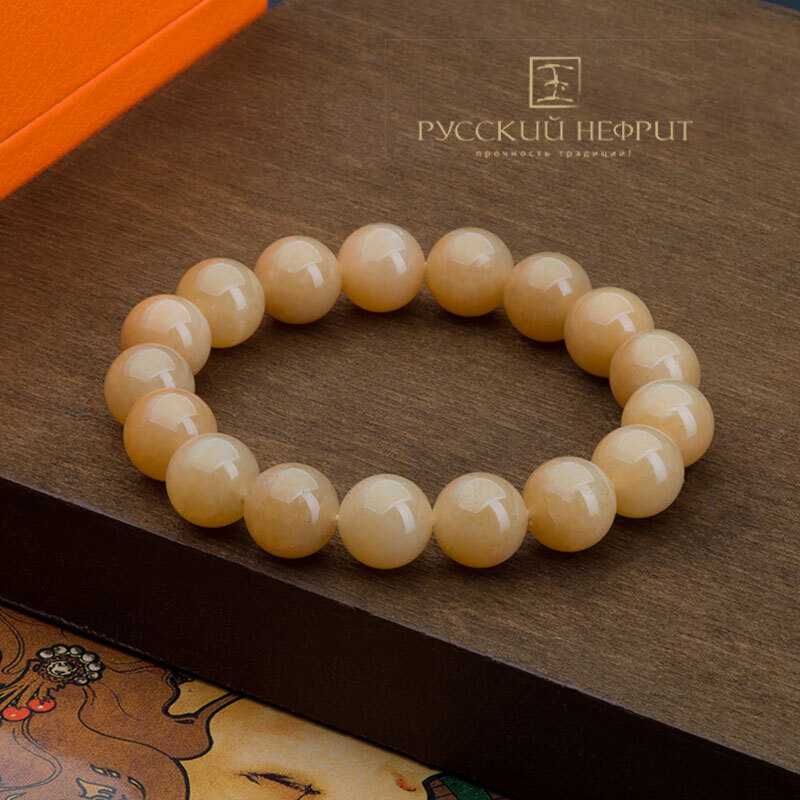 Браслет "Классика". Медовый нефрит. Бусины 12мм