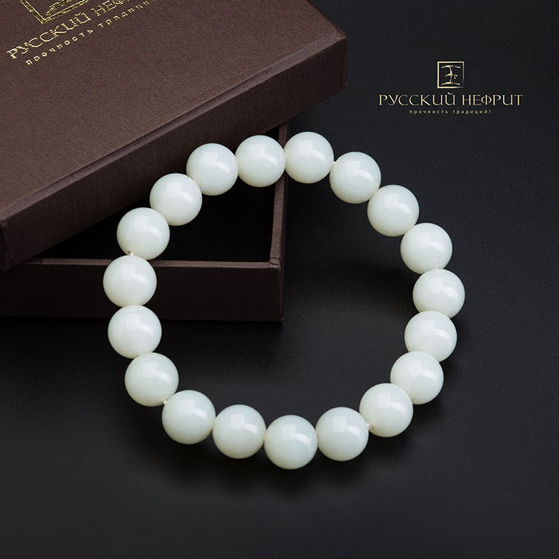 Браслет "Классика". Белый нефрит. 12 мм.