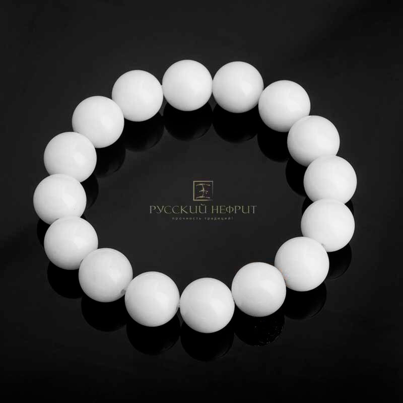 Браслет "Классика". Белый нефрит. Бриле. 12мм.