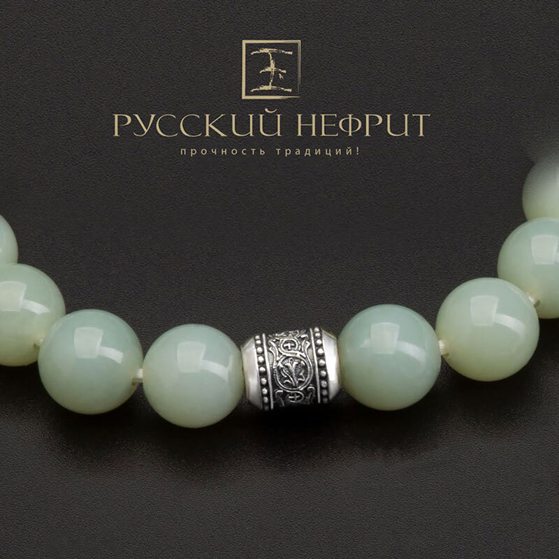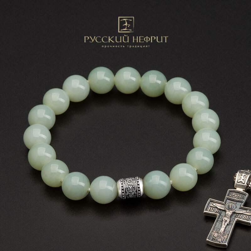 Браслет-оберег православный. Нефрит, серебро. 10 мм.