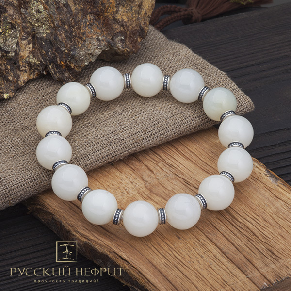 Браслет "Восток". Белый нефрит. 12мм.