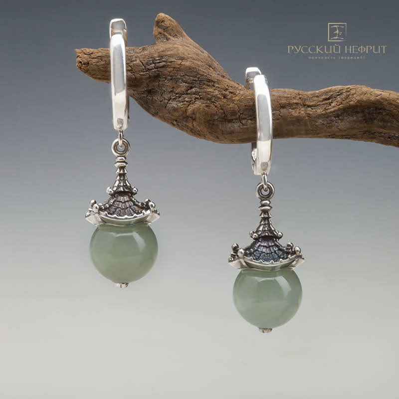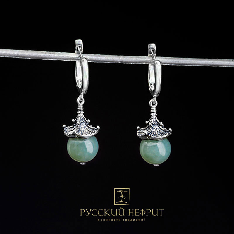 Серёжки с нефритом морская волна "Доугун".