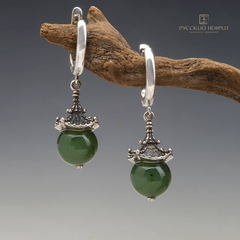 Серёжки с зеленым нефритом "Доугун".