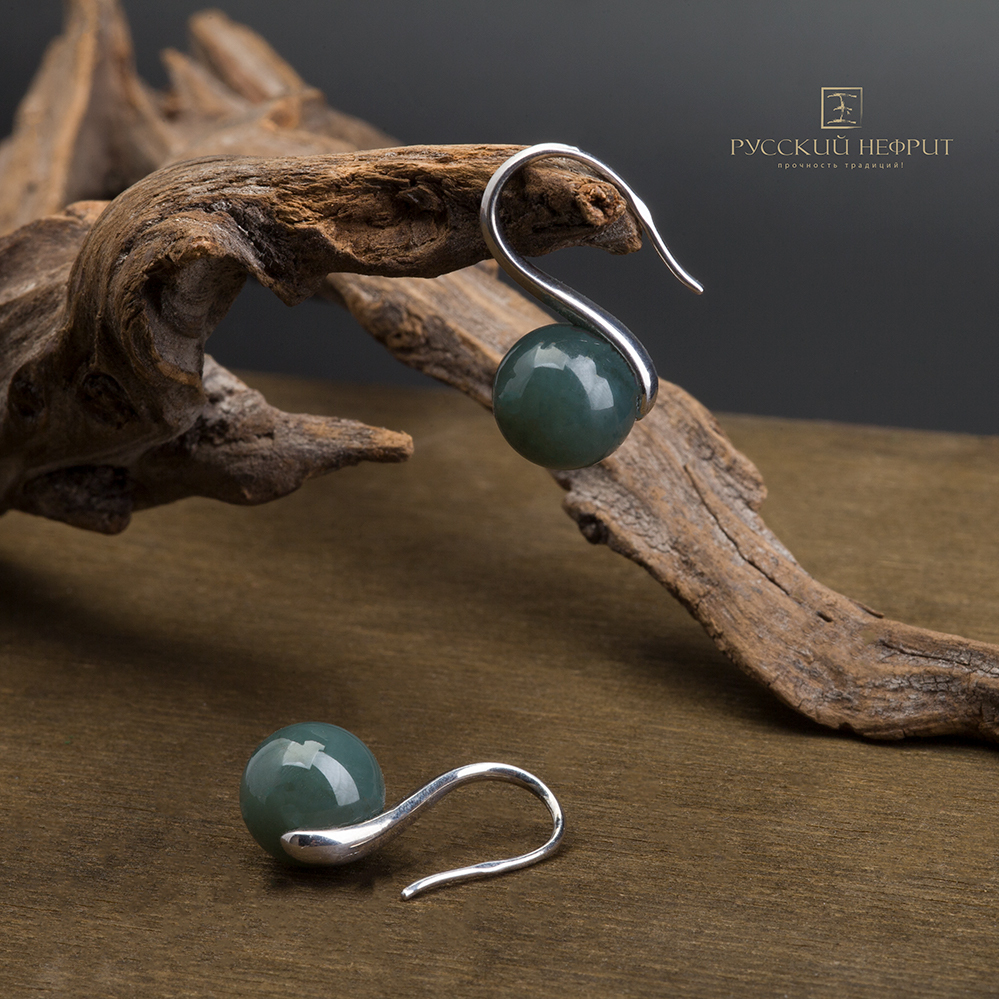 Серьги из коллекции Perlus локоничны и просты. Как принято сейчас называть - база. Такие серьги прекрасно подойдут под брючный костюм, повседневный или вечерний образ. Бусины из зелёного нефрита 12 мм; серебро 925пр.