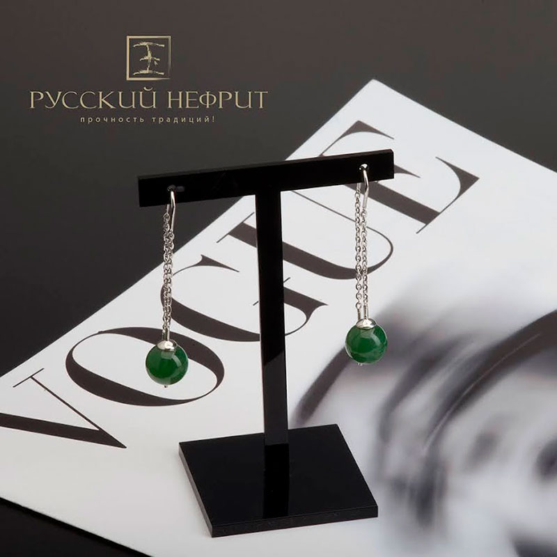 Серьги-протяжки Luna. Серебро, зелёный нефрит.