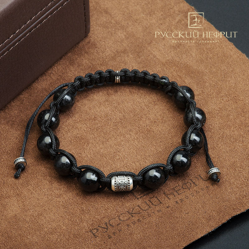 Браслет Православный. Чёрный нефрит Д 10мм.