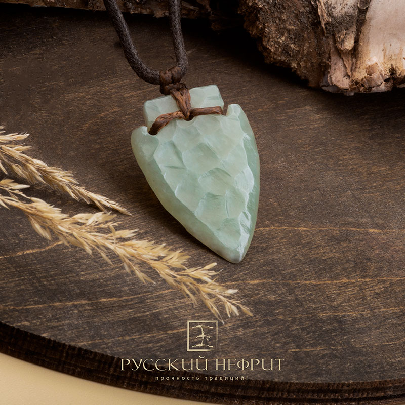 Древний артефакт в современном исполнении. Оберег "Стрела" из натурального нефрита цвета морской волны - брутальный амулет для тонкой души.