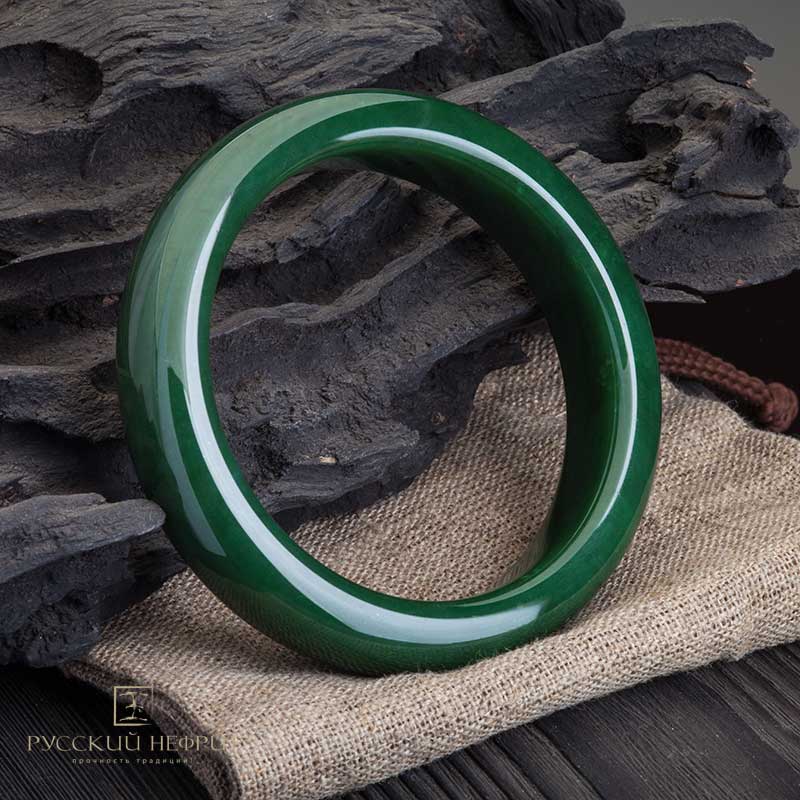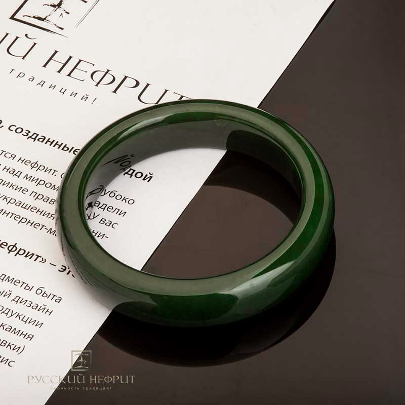 Нефритовый браслет цельный. Зелёный модэ.