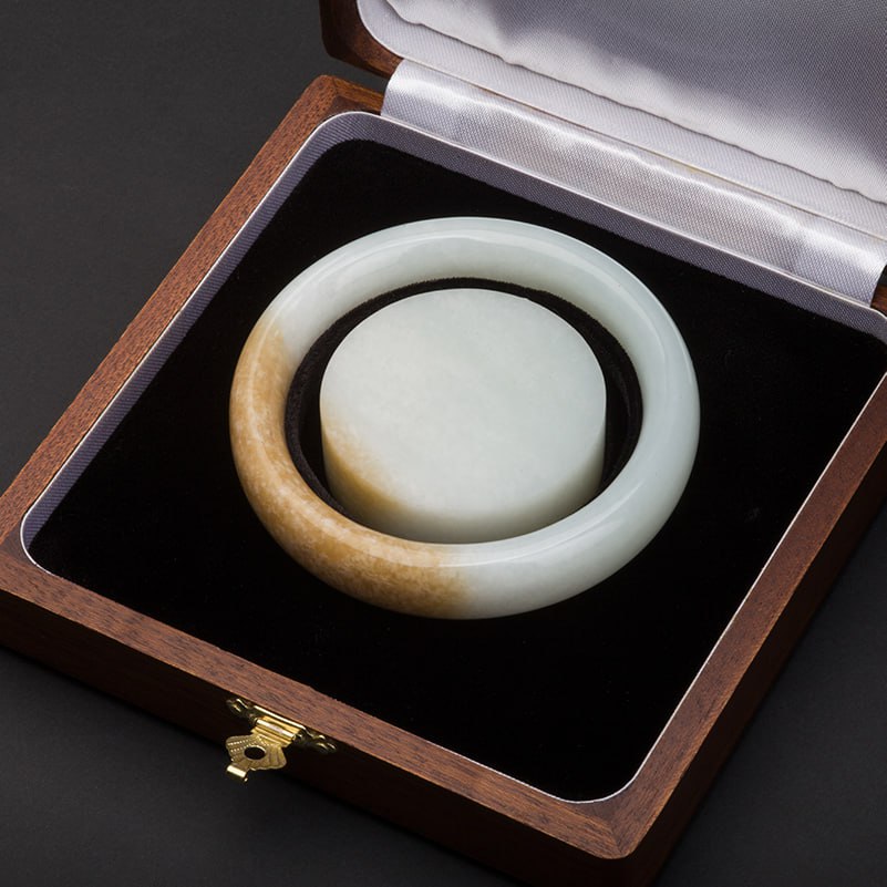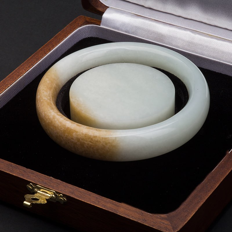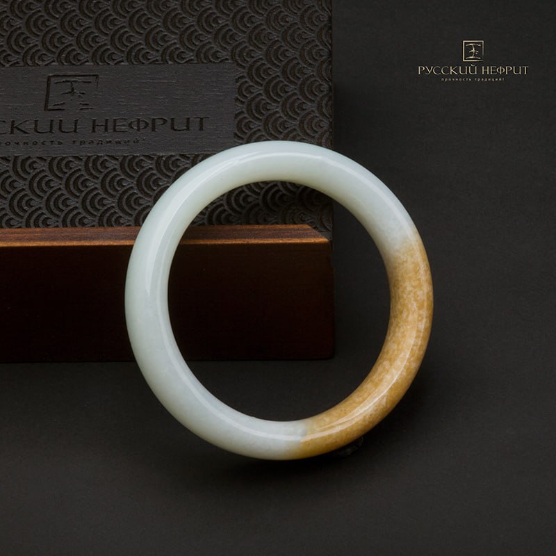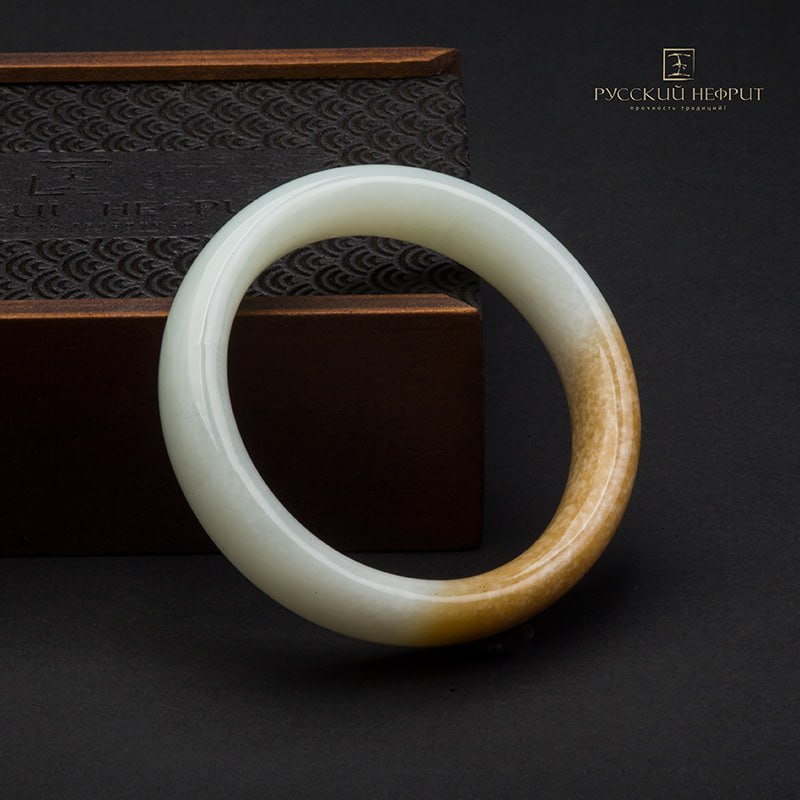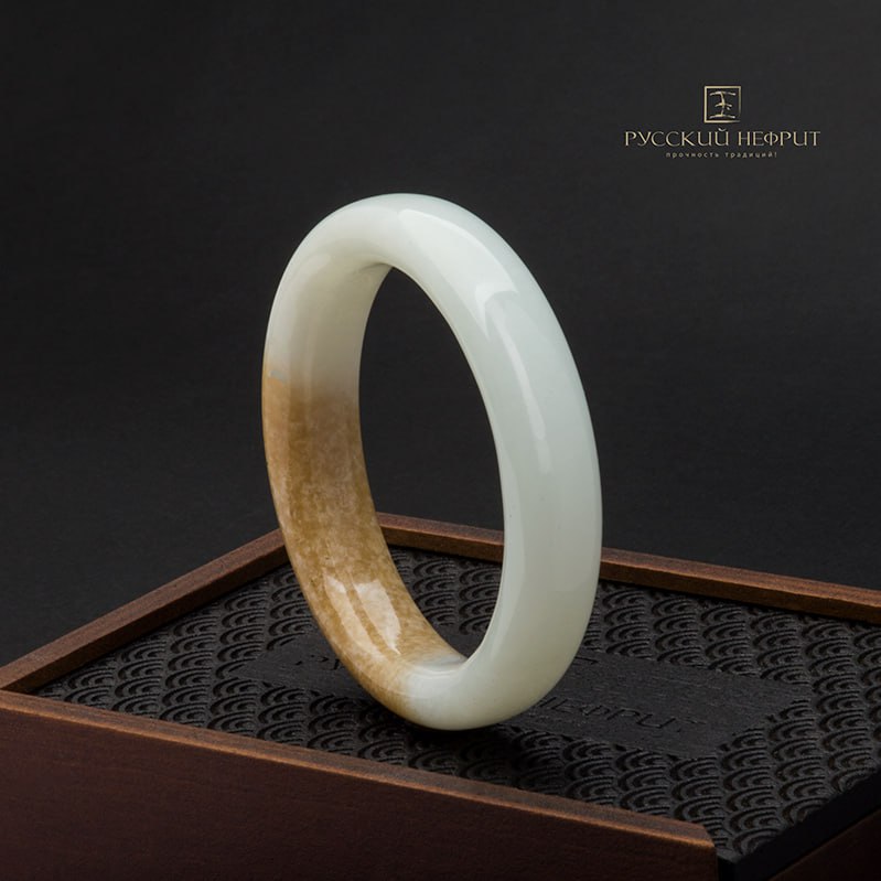 Браслет сплошной из бело-медового нефрита.