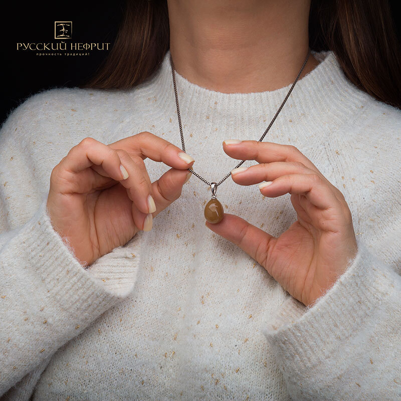 Подвеска яйцо из медового нефрита.