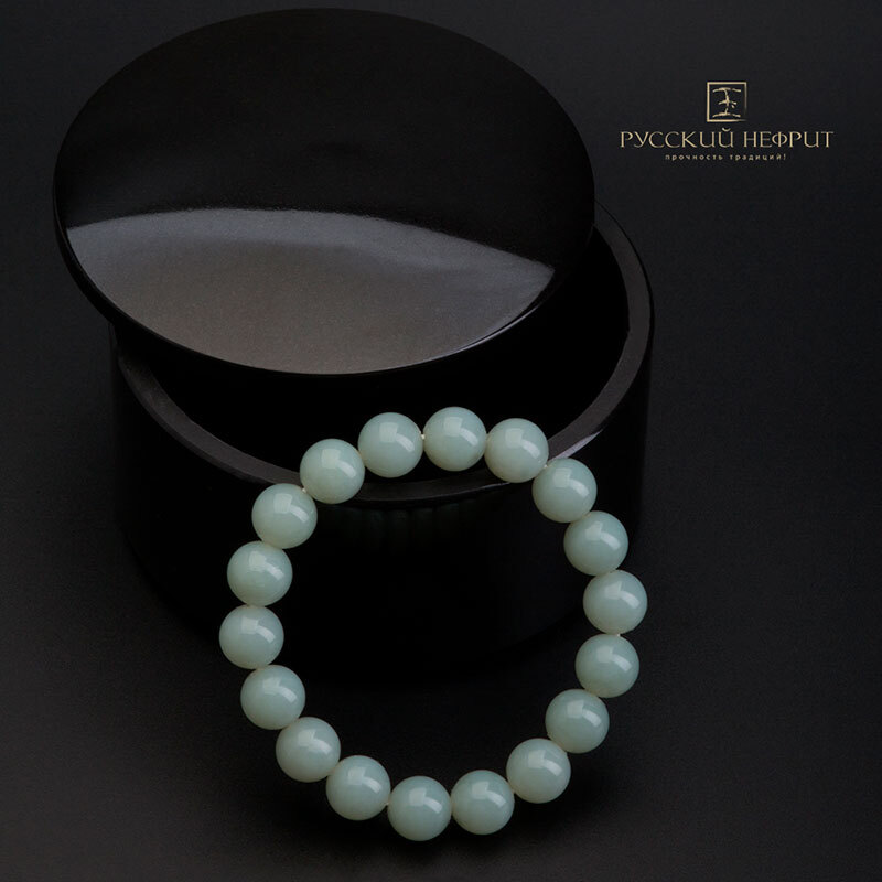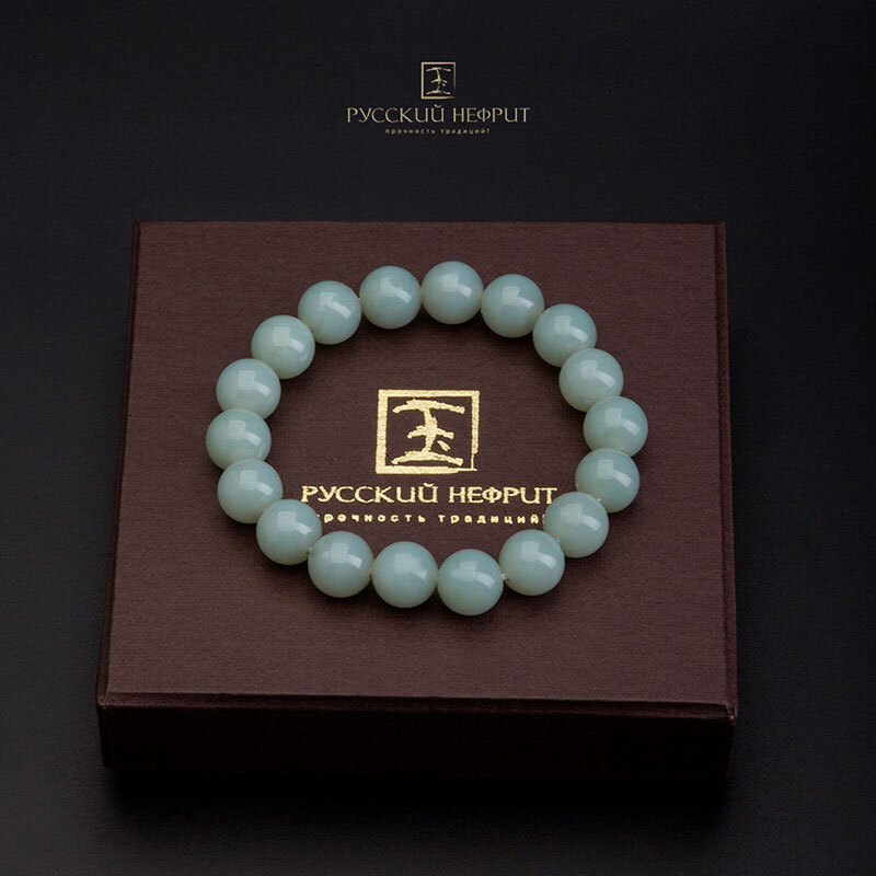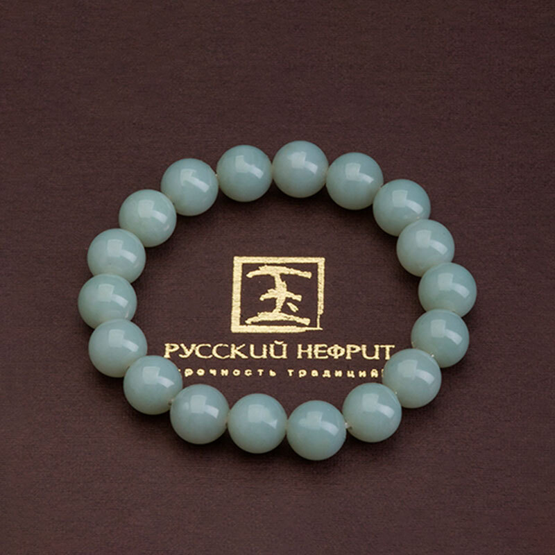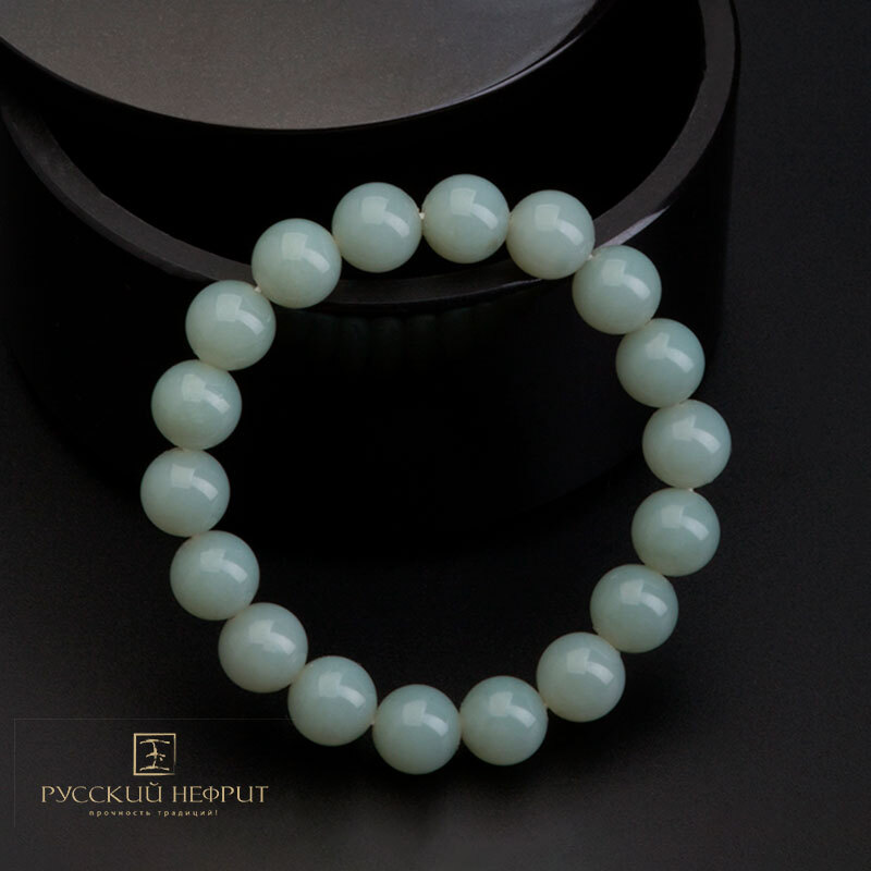 Браслет "Классика". Голубой нефрит. 10 мм.