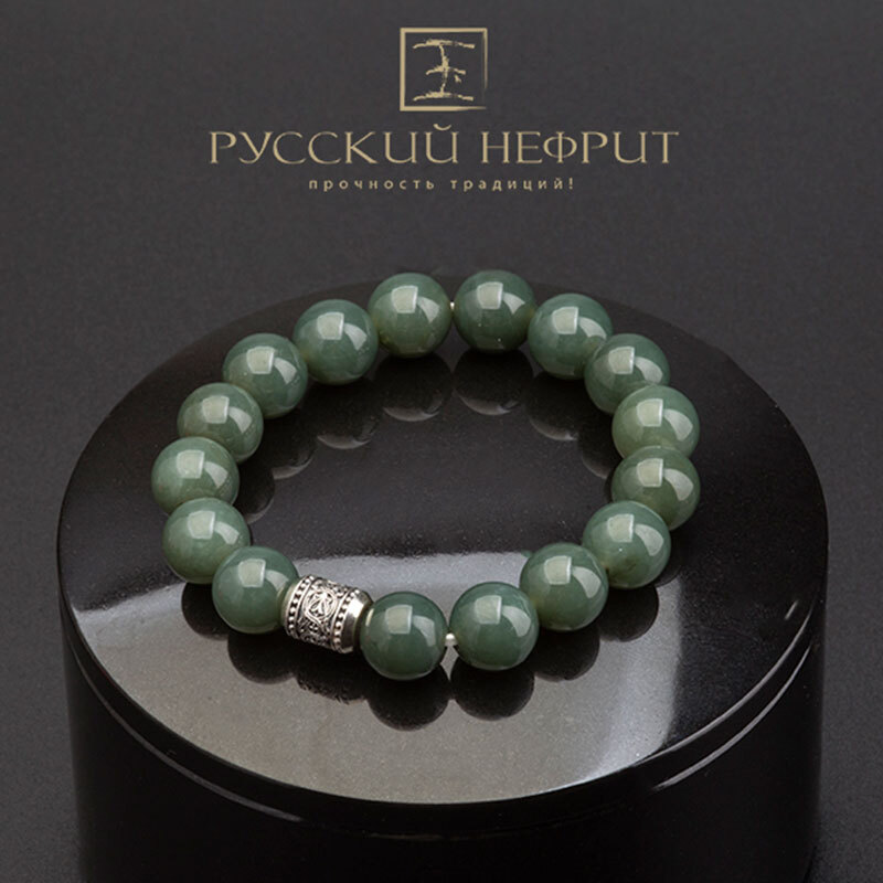 Браслет-оберег православный. Нефрит, серебро. 10 мм.