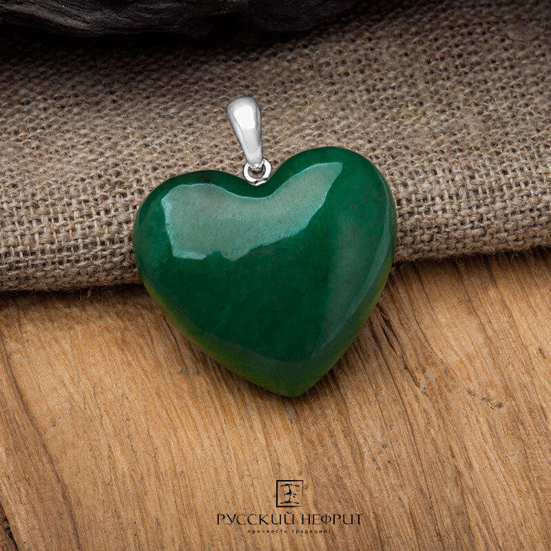 Подвеска "Сердце" из зелёного нефрита.