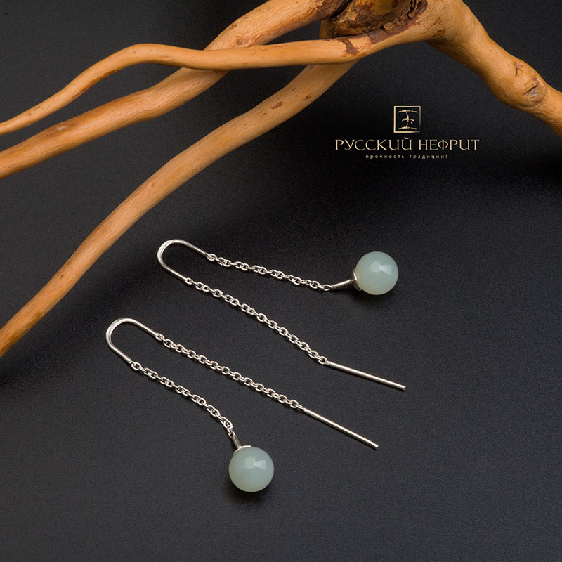 Серьги-протяжки Luna. Серебро, буромский нефрит