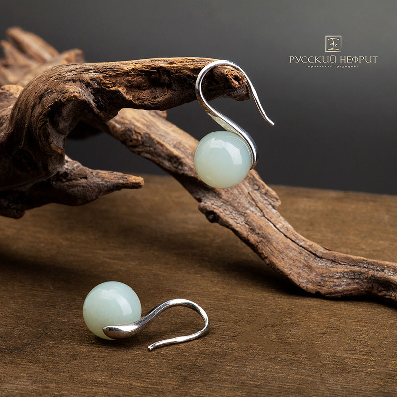 Серьги "Перлус" с буромским нефритом.