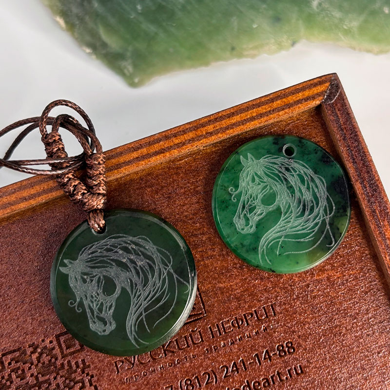 Амулет "Год лошади" из зелёного нефрита.