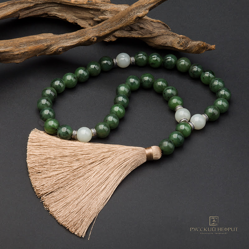 Чётки православные из зелёного нефрита. 30 бусин.