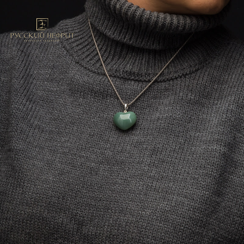 Кулон в виде сердца. Нефрит морская волна.