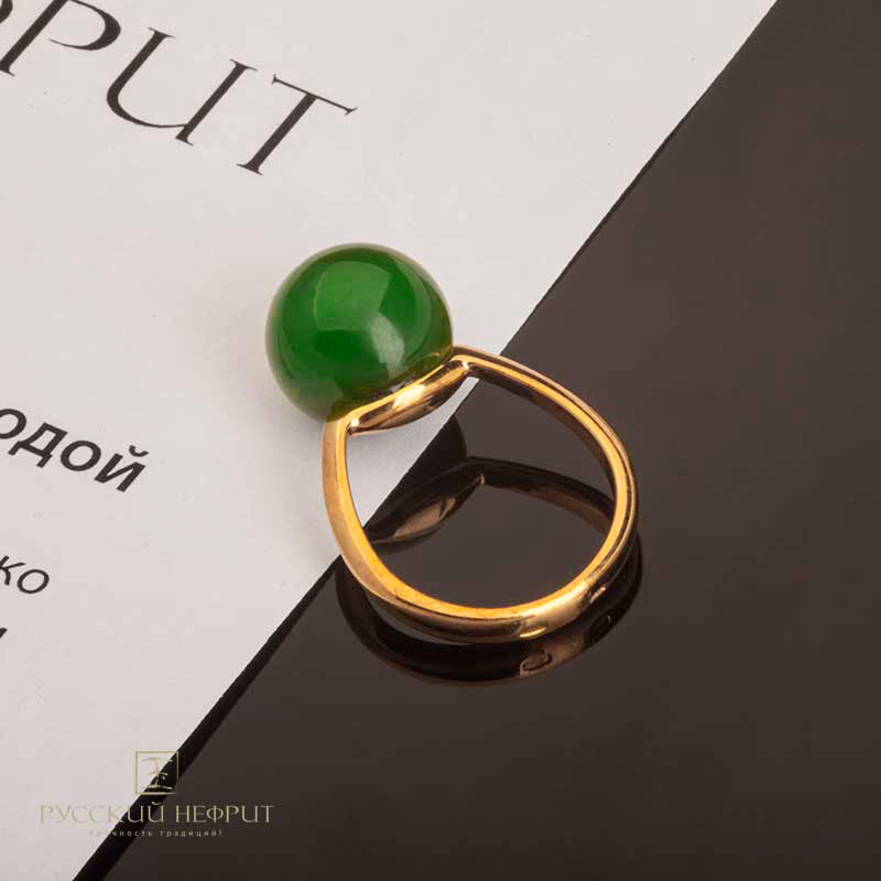 Кольцо "Перлус". Зеленый нефрит Бриле.