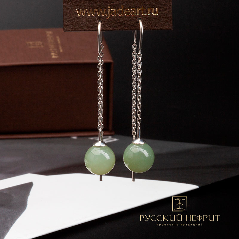Серьги-протяжки Luna. Серебро, буромский нефрит